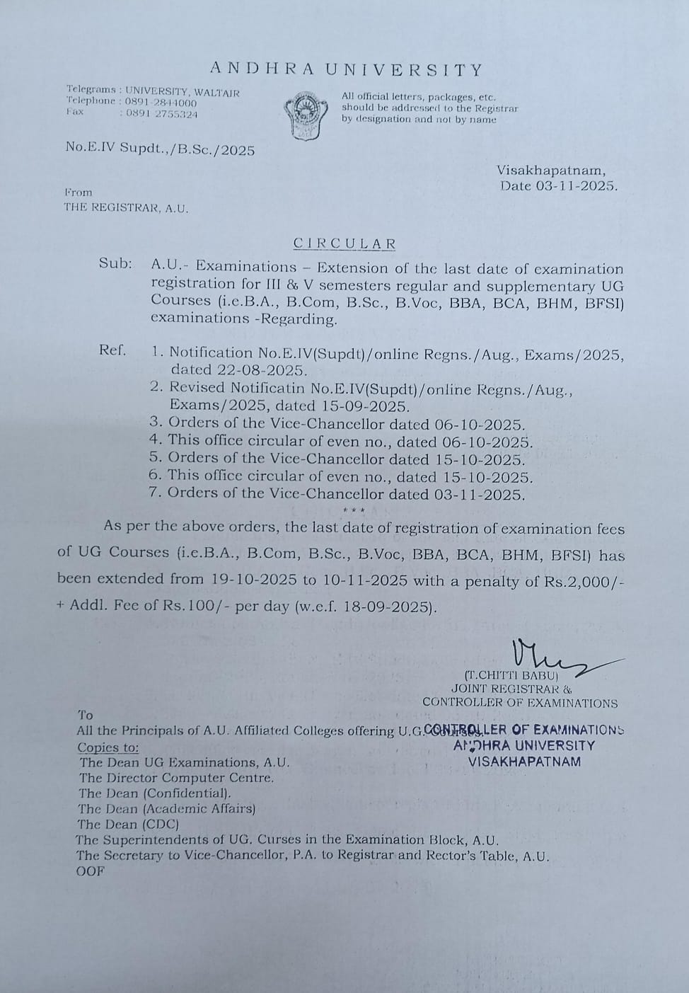 | 15 | 27/10/25 | Circular - AU Examinations Postponement and Rescheduled of PG Diploma in Yoga Click here |